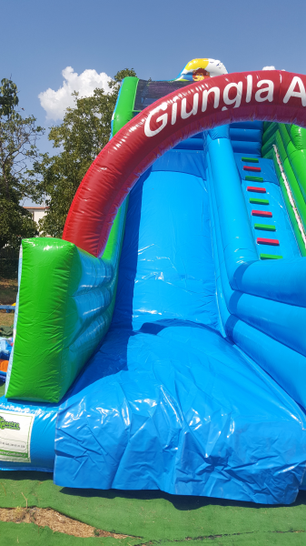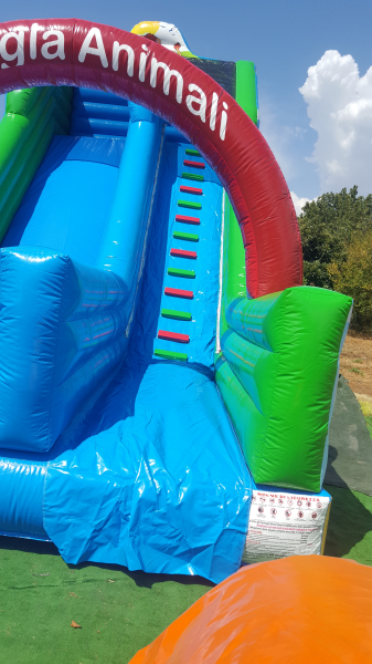 Inflatable slides on offer! The inflatable slide Professional model Giant is one of the most fun inflatable games in circulation. Made of PVC 0.65 gr. flame retardant, non-toxic, flame retardant is an absolute novelty in the world of inflatable games for designs made in digital printing !!! Our inflatable products are ideal for playrooms, schools, areas used with playground and inflatable games, agencies animations and beaches and tourist resorts. All inflatable games are complete with blower. The measures are the Giant Inflatable: 9 mx 4.50 mx 7.50 h Our products are manufactured with the following European directives on safety. UNI - EN 14960 (roundabouts Inflatables) DL 18-05-2007 (Travelling Entertainment) All our inflatables are equipped with the certificate Fireproof class fire reaction 2 as required for the license of the traveling show and by the insurance companies.
