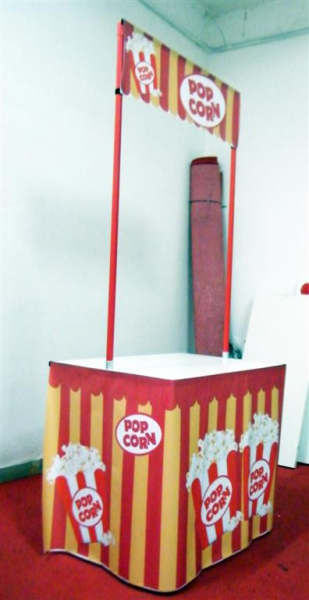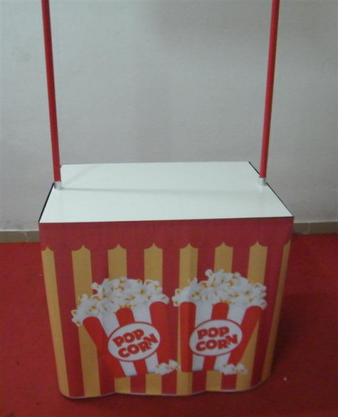 It can contain everything needed for the preparation and sale of Pop Corn.